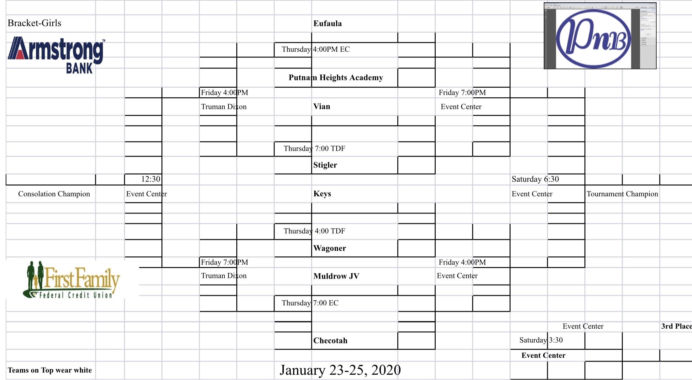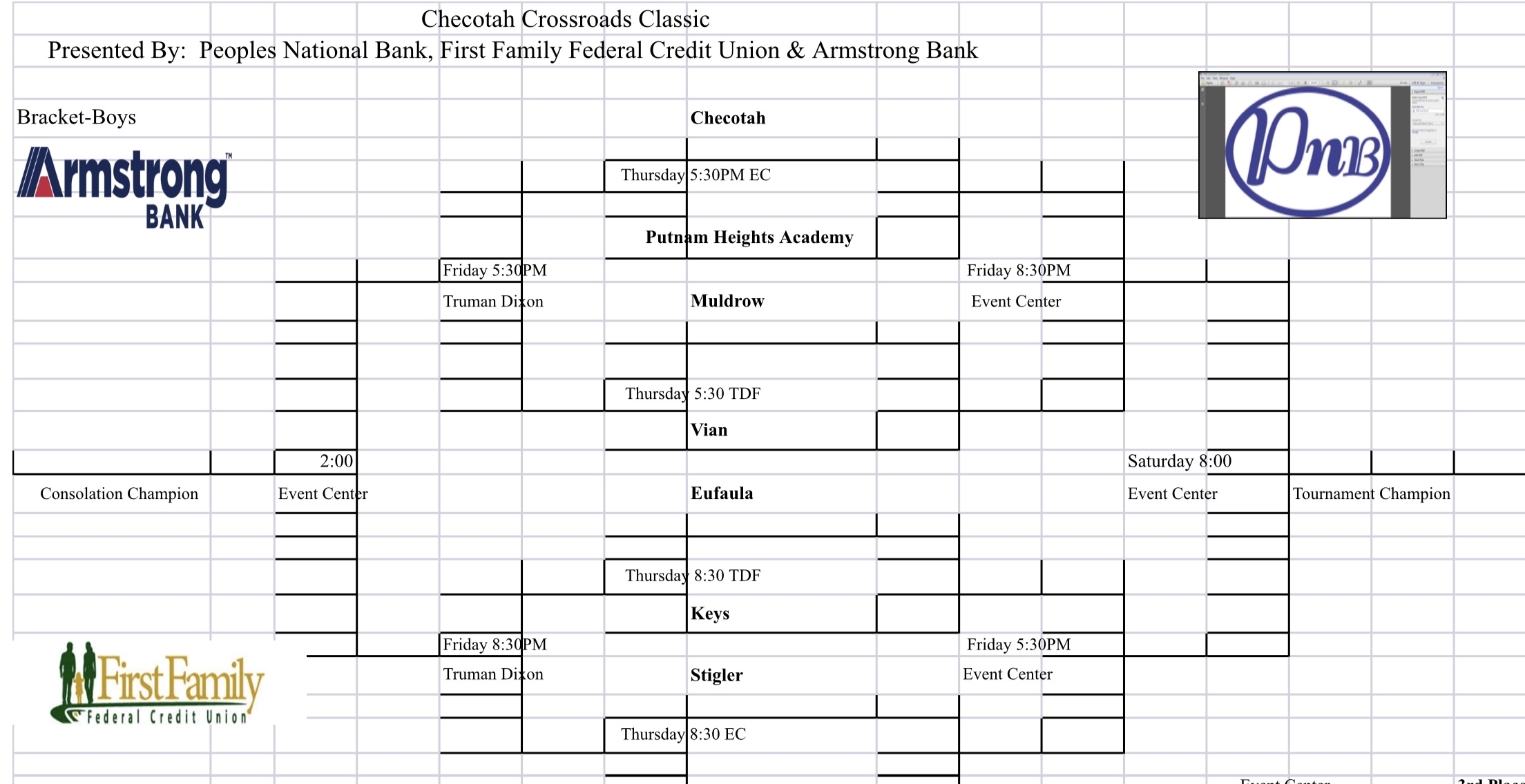 The brackets for the Checotah Crossroads Classic basketball tournament are posted here. In the opening games, The Varsity Bulldogs will play Thursday, January 23 at 5:30 PM at Truman Dixon Fieldhouse (the old gym).  The Lady Bulldogs JV will play Checotah Thursday, January 24 at 7 PM in the Event Center (the new gym). Go Dogs!