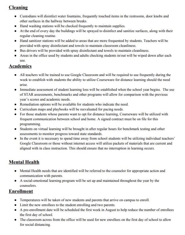 RETURN TO LEARN PLAN: MMS